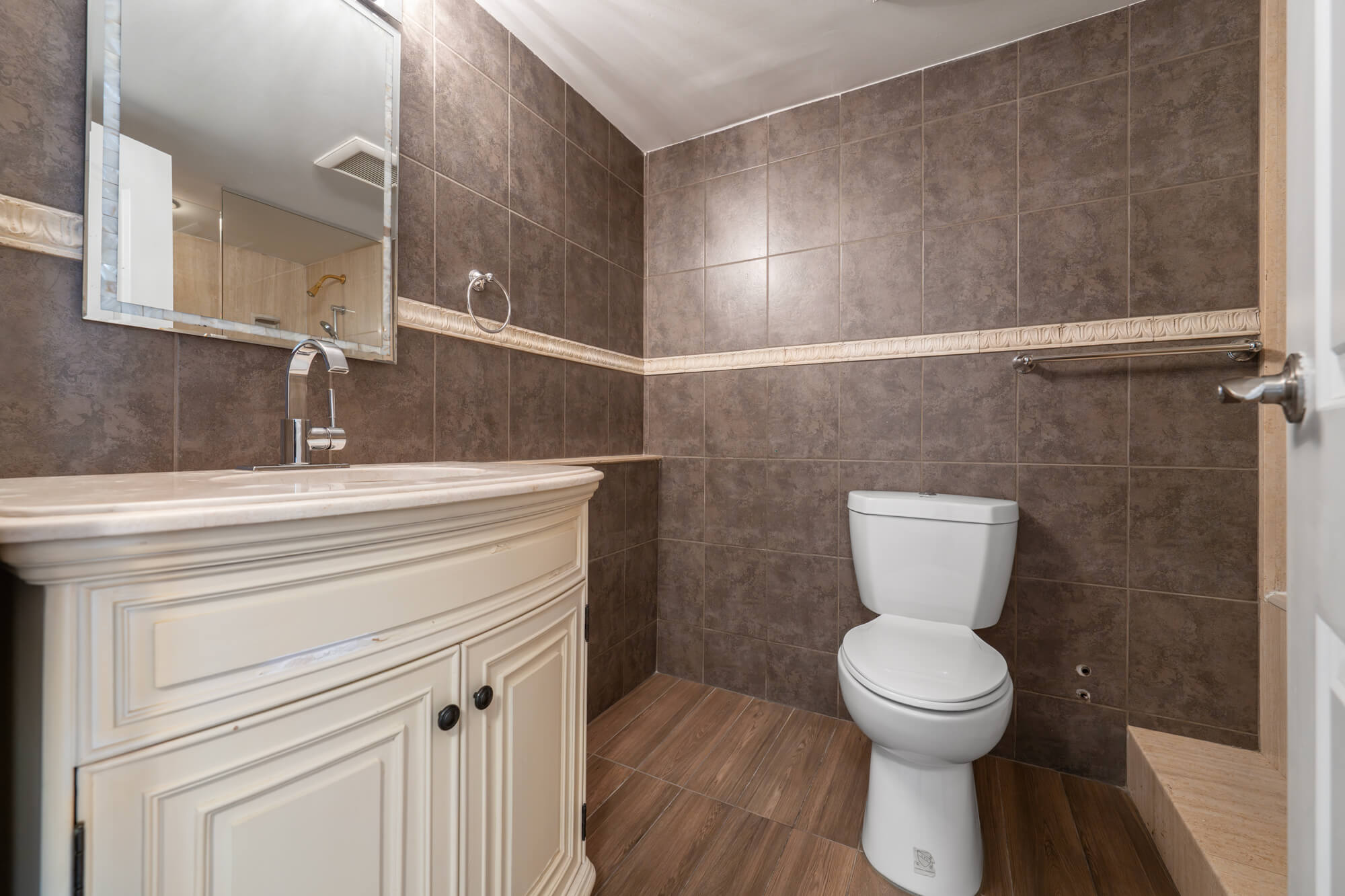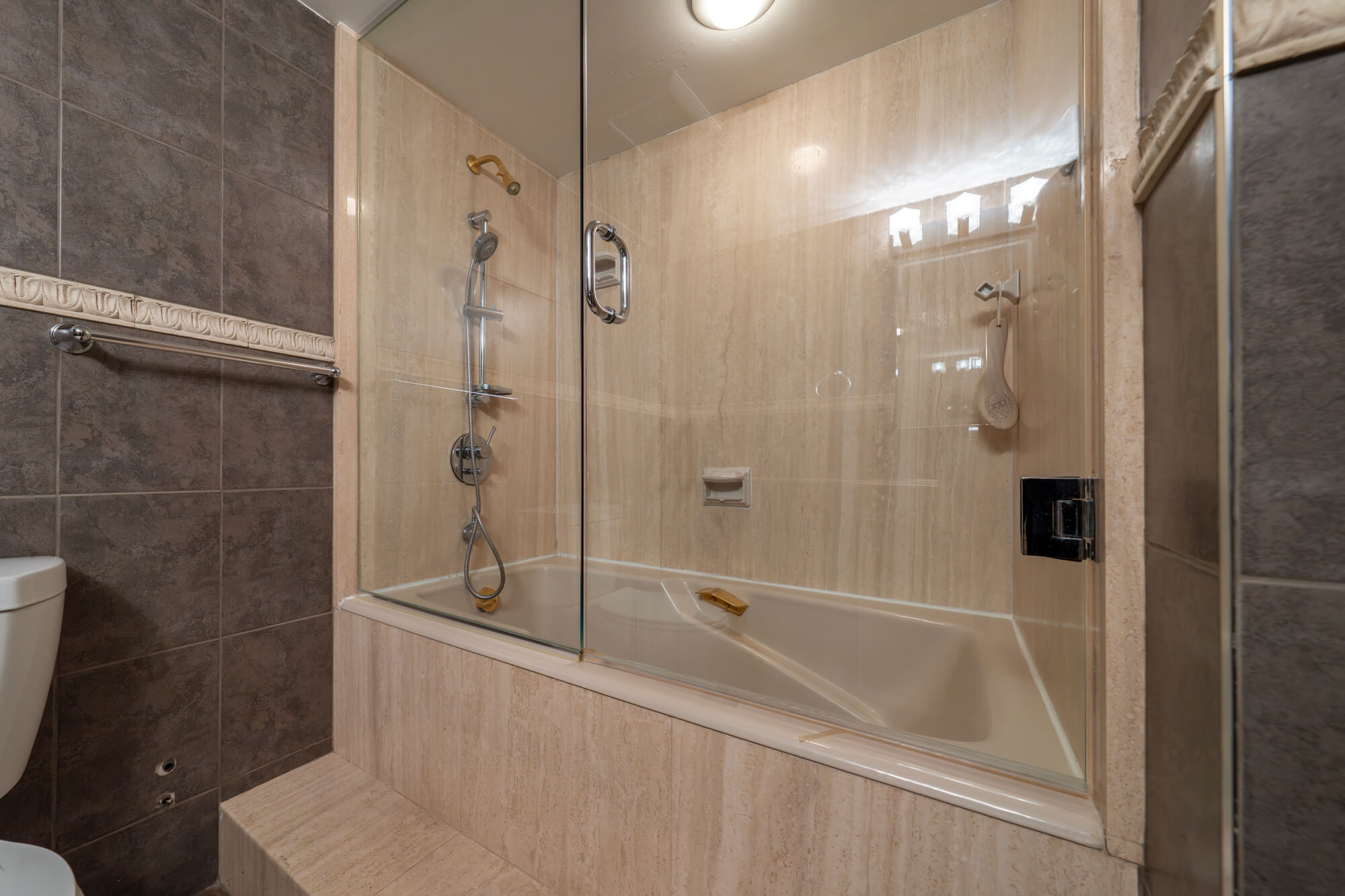 This 2 bedroom + family room suite features bright floor to ceiling windows with laminate flooring throughout overlooking the outdoor rooftop garden. Updated kitchen with stainless steel appliances, stone countertops and an undermount sink. Main bedroom with a 4-piece ensuite and a walk-in closet. 2nd bedroom with large windows and a mirrored closet. The spacious sized family room can easily accommodate a 3rd bedroom or home office.